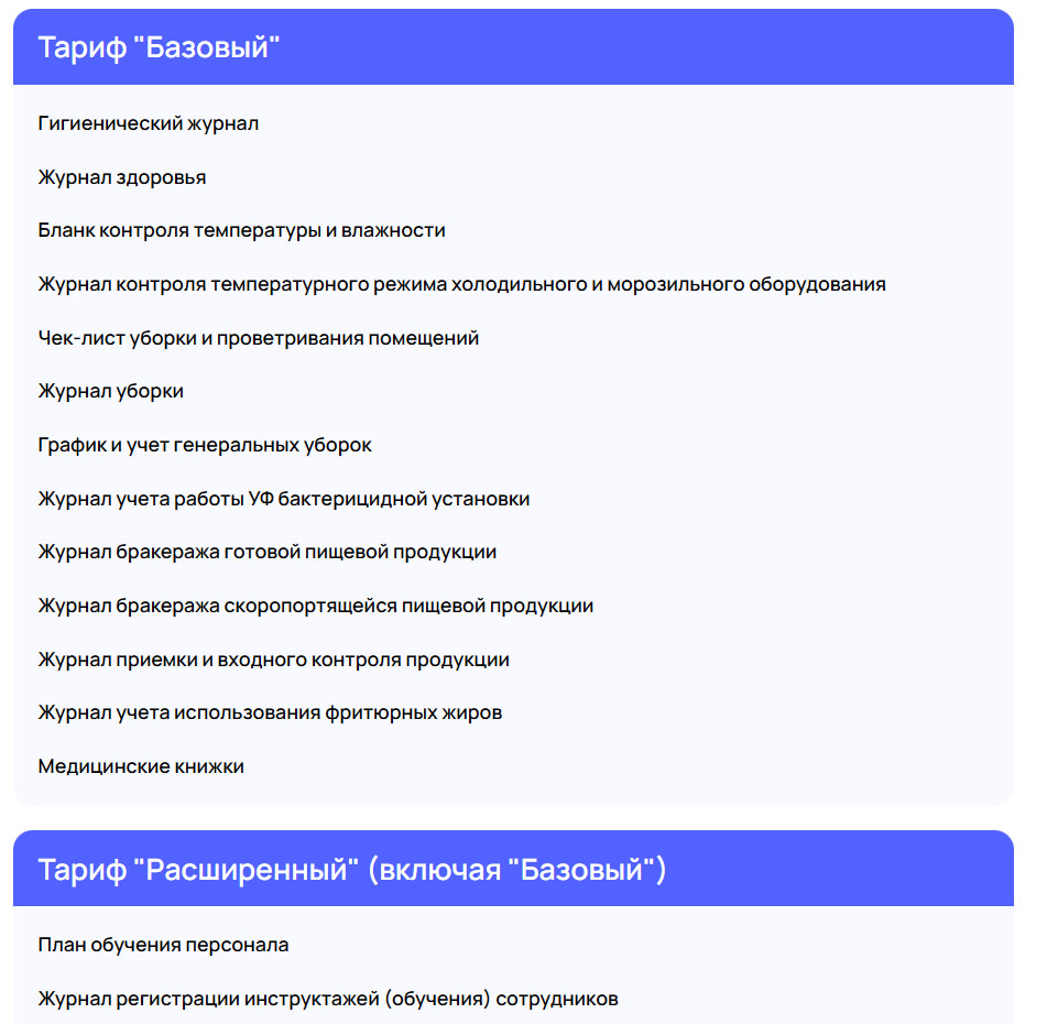 Включает в себя все журналы из базового тарифа, а также журналы по ХАССП, которые можно подобрать из перечня.