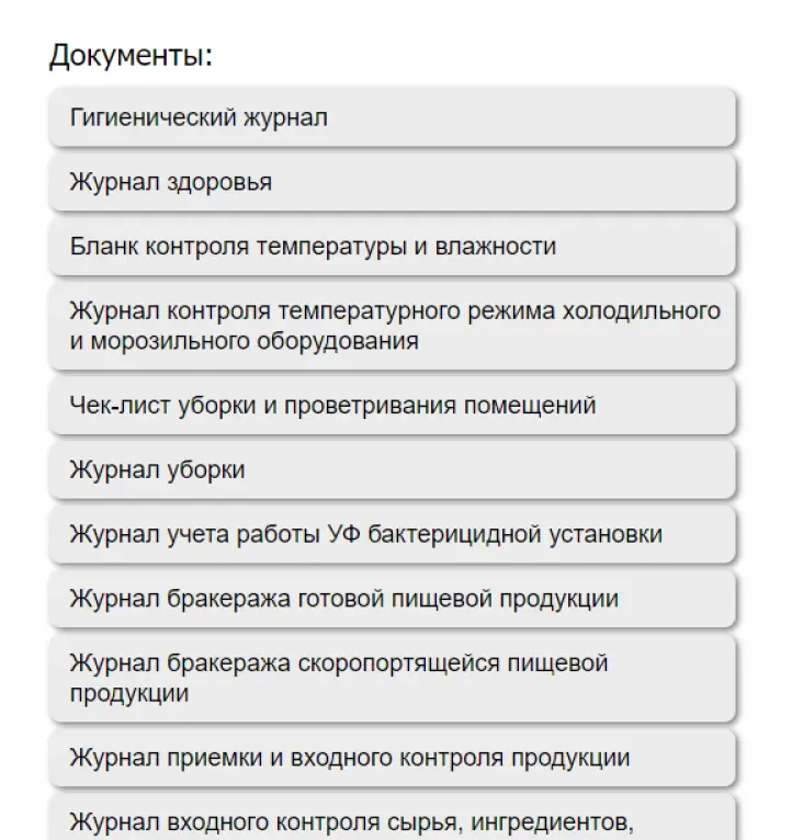 Включает в себя ключевые журналы СанПиН необходимые для эффективного функционирования пищевого предприятия.